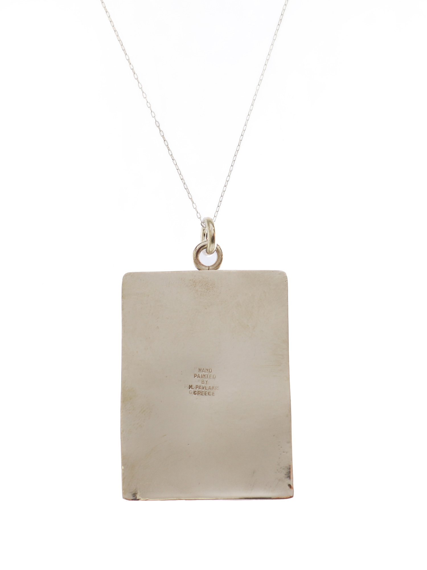 Pendant painted with enamel on porcelain fired at 800 oC and bound with 925 silver. The chain is included.