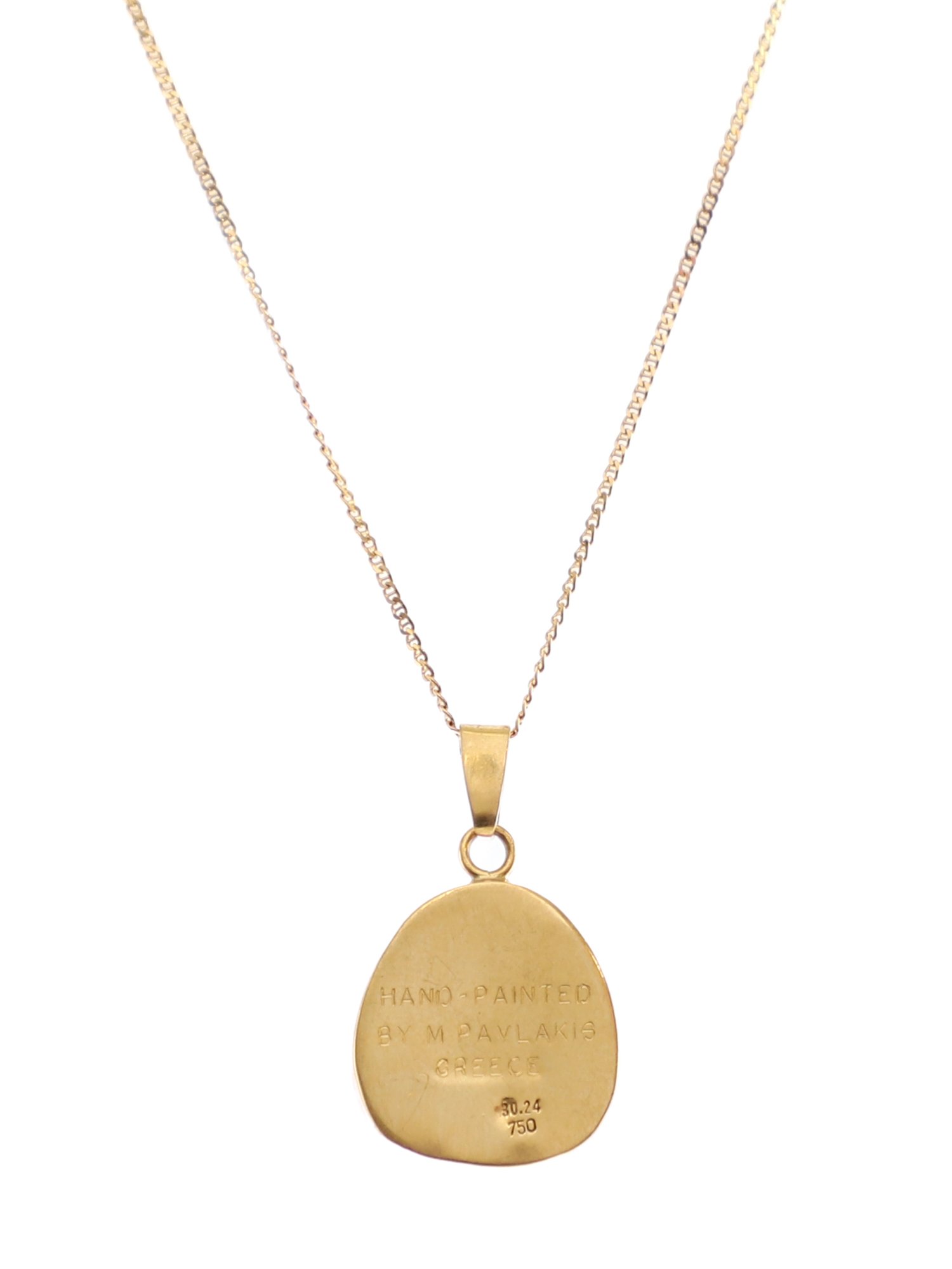Painted enamel pendant on porcelain fired at 800°C and set in 18K gold. The chain is not included.