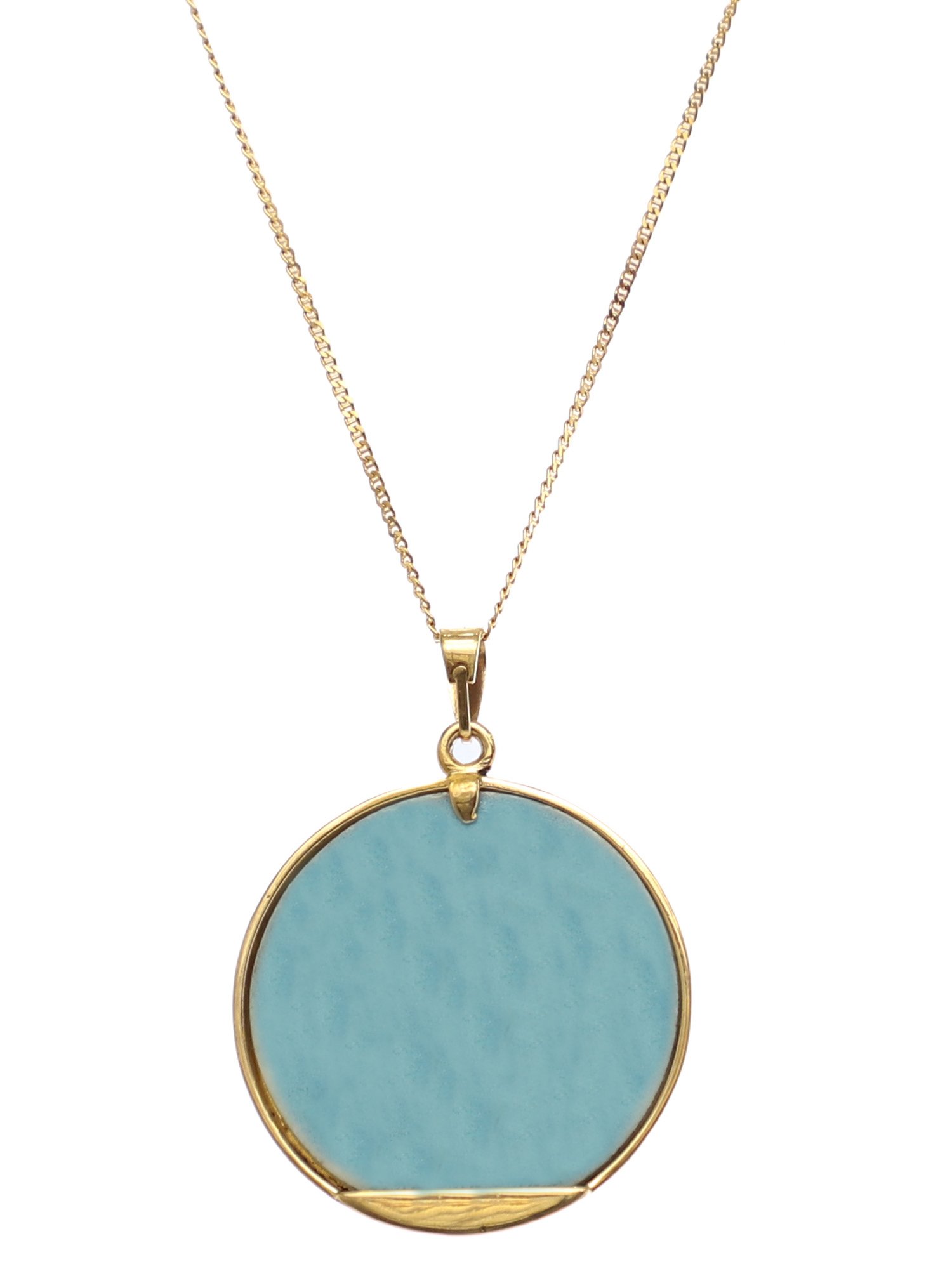Ο Δίας μεταμορφωμένος σε ταύρο αρπάζει την Ευρώπη. Μενταγιόν ζωγραφιστό με σμάλτο πάνω σε πορσελάνη ψημένο στους 800 οC και δέσιμο με χρυσό 14Κ.Η αλυσίδα δεν περιλαμβάνεται.